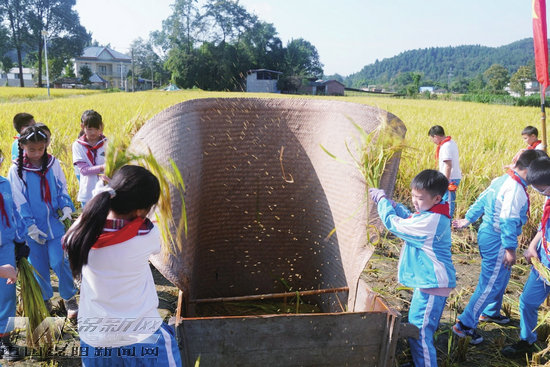 綿陽新聞網(wǎng)訊 金秋稻低垂,豐收?qǐng)D景美。近日,江油市花園小學(xué)的同學(xué)們?cè)诶蠋煹膸ьI(lǐng)下來到江油市武都鎮(zhèn)南塔村七組一片金色稻田開展“顆粒歸倉”勞動(dòng)實(shí)踐活動(dòng)。