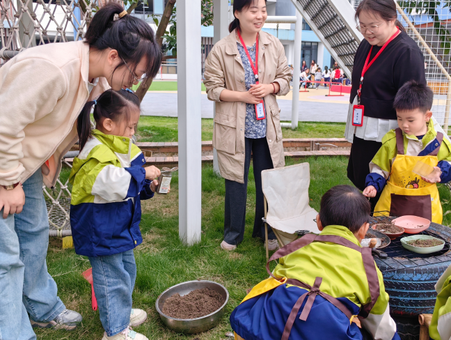 來(lái)訪教師們走進(jìn)游戲、走進(jìn)兒童,觀摩了基于兒童興趣開展的室內(nèi)外自主游戲活動(dòng)。