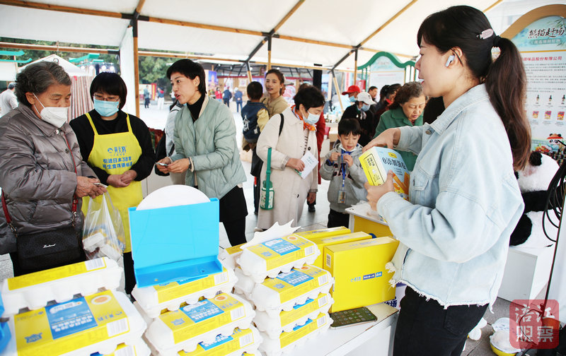 在熊貓趕場(chǎng)館內(nèi),綿陽米粉、安州皮蛋、中壩醬油、黃天鵝雞蛋等綿陽老字號(hào)、地標(biāo)性農(nóng)特產(chǎn)品香飄四溢;