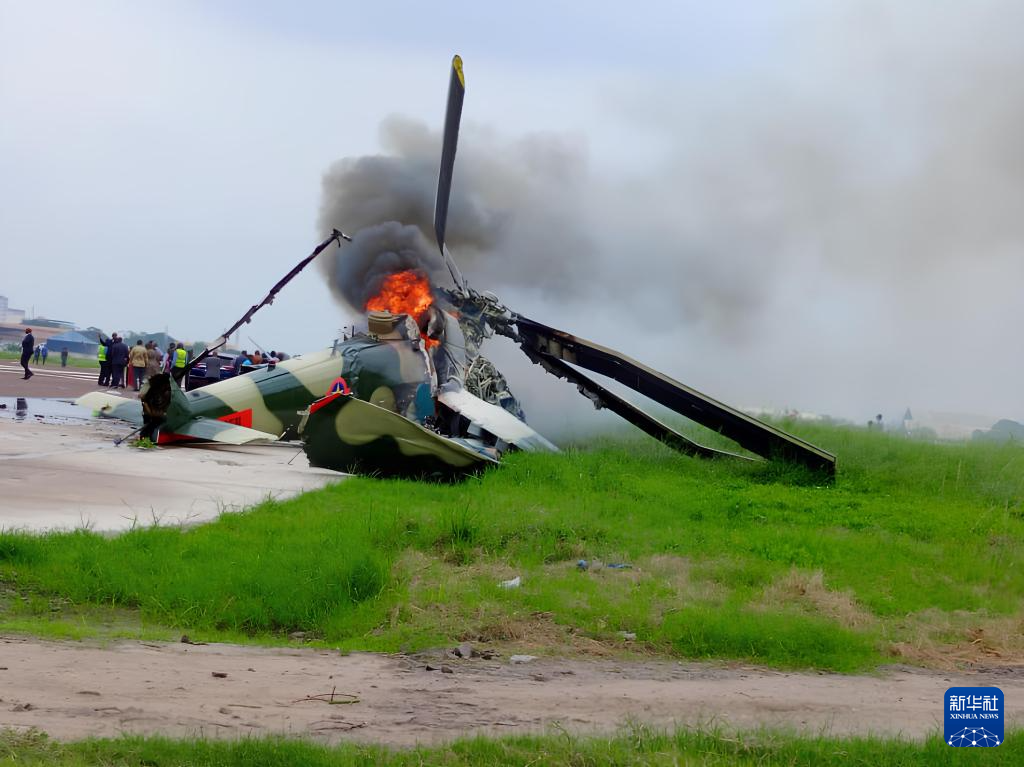 這是10月30日在剛果(金)首都金沙薩拍攝的直升機(jī)墜毀現(xiàn)場照片。新華社(剛果(金)通訊社供圖)