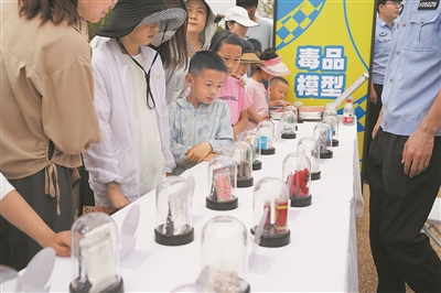 觀眾在陜西省西安市公安局舉辦的首屆警營(yíng)開(kāi)放日活動(dòng)現(xiàn)場(chǎng)觀看毒品模型。新華社記者 邵瑞攝