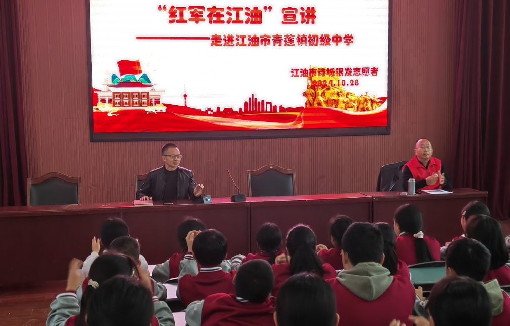 宣講會(huì)上,敖老師首先介紹了紅軍長(zhǎng)征的歷史背景和當(dāng)年全國(guó)紅軍的概況,接著就紅軍在江油的活動(dòng)范圍、籌款籌糧、發(fā)動(dòng)群眾、軍事部署以及江油人民的生產(chǎn)生活作了講解,特別就對(duì)敵作戰(zhàn)的謀劃實(shí)施到失敗、再謀劃再?zèng)_鋒、屢戰(zhàn)屢敗又英勇殺敵到最后終于成功取勝作了詳細(xì)講解,老師講得生動(dòng)有趣,學(xué)生們聽(tīng)得津津有味,活動(dòng)現(xiàn)場(chǎng)不時(shí)爆發(fā)出陣陣掌聲,與會(huì)學(xué)生都為紅軍的英勇行為深深敬佩,更為今天的美好生活倍感幸福。