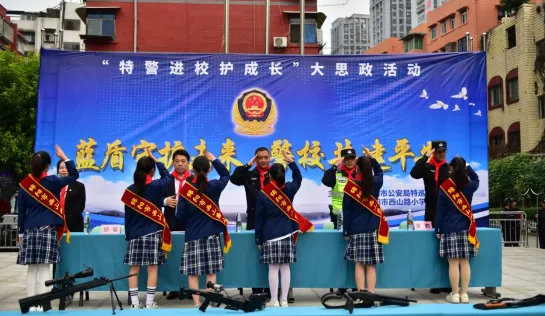 為了厚植愛國(guó)主義情懷,全面深入貫徹加強(qiáng)未成年人思想道德建設(shè),進(jìn)一步增強(qiáng)廣大師生的安全防范意識(shí),提高應(yīng)對(duì)突發(fā)事件和自我保護(hù)的能力,有力推進(jìn)平安校園建設(shè),10月29日上午,綿陽(yáng)市西山路小學(xué)攜手綿陽(yáng)市特巡警支隊(duì),開展了以“藍(lán)盾守護(hù)未來 警校共建平安”為主題的2024年秋特警進(jìn)校護(hù)成長(zhǎng)大思政活動(dòng)。