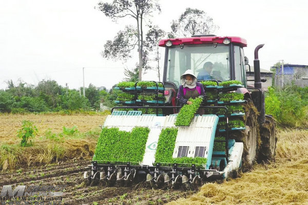 走進安州區(qū)黃土鎮(zhèn)芋河村,永福農(nóng)機專業(yè)合作社的農(nóng)機手正駕駛著油菜聯(lián)合移栽機,將育出的油菜“毯狀苗”移栽到大田中。在轟鳴的機器聲中,一次性就完成了犁翻埋茬、旋耕整地和移栽三道工序,一塊塊“綠毯”一樣的油菜苗經(jīng)過機器運作,高效、整齊地栽種到田里,整個過程不到半小時。