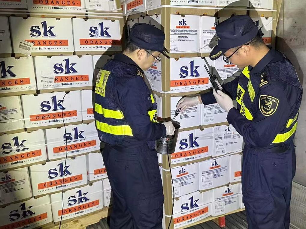 以一批進(jìn)口鮮橙為例,歷經(jīng)40天遠(yuǎn)洋運(yùn)輸,抵達(dá)上海港后,航運(yùn)公司將運(yùn)輸過程中冷處理數(shù)據(jù)直接上傳至海關(guān)跨境貿(mào)易大數(shù)據(jù)平臺(tái),短短幾秒鐘,數(shù)千條數(shù)據(jù)即可完成智能比對(duì),如果顯示合格,進(jìn)口鮮橙可立即運(yùn)往進(jìn)境水果指定監(jiān)管場(chǎng)地接受查檢。在嚴(yán)格把關(guān)的前提下,進(jìn)口鮮橙一兩天即可出現(xiàn)在上海及長(zhǎng)三角區(qū)域的水果市場(chǎng)或電商平臺(tái)上。