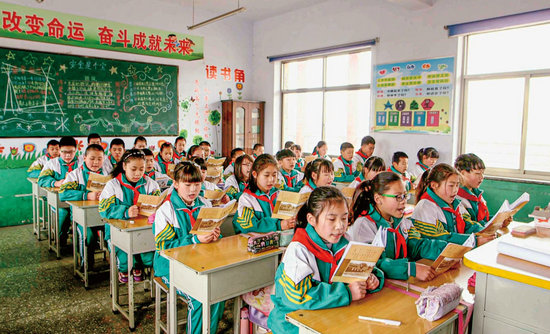 裴柏小學(xué)的孩子們在朗讀鄉(xiāng)土教材《裴氏故事》。李楠攝