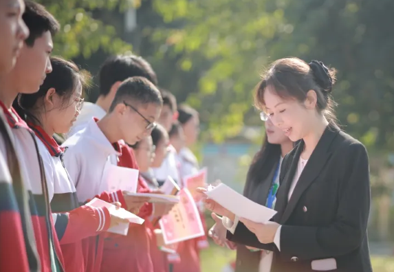 該校副校長、2022級年級組長賴亞麗發(fā)表慷慨激昂的講話,向本次獲獎同學表示了熱烈的祝賀,并且鼓勵同學們向榜樣看齊,給予同學們殷切的期望。