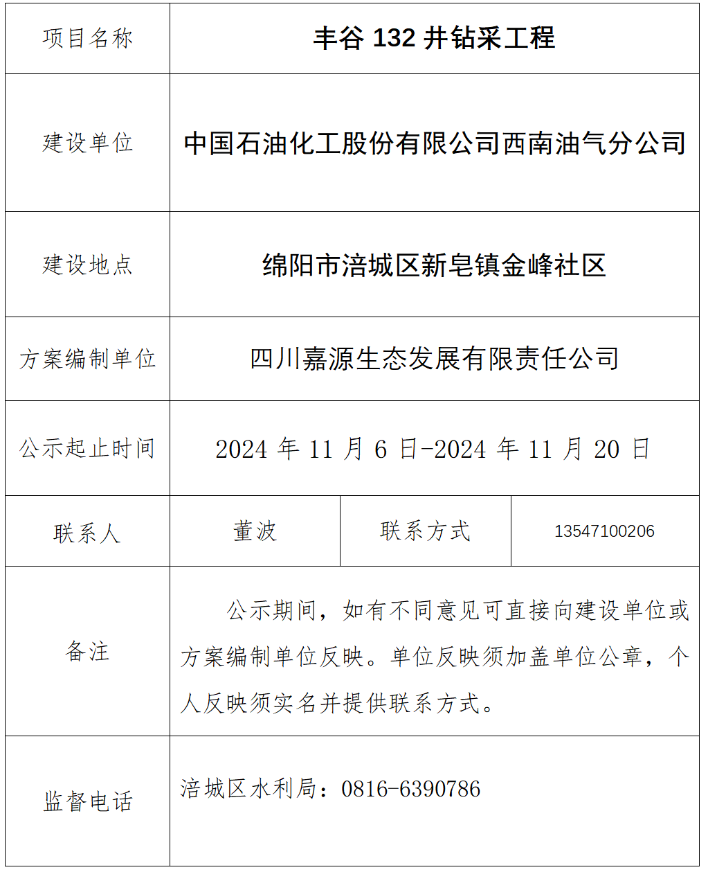 豐谷132井鉆采工程水土保持方案報(bào)告表公示