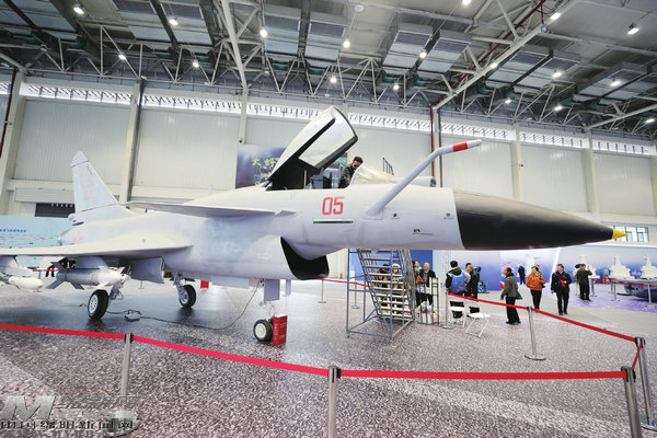 11月7日,在第十二屆中國(綿陽)科技城國際科技博覽會現(xiàn)場,參會者登上戰(zhàn)斗機模型體驗。