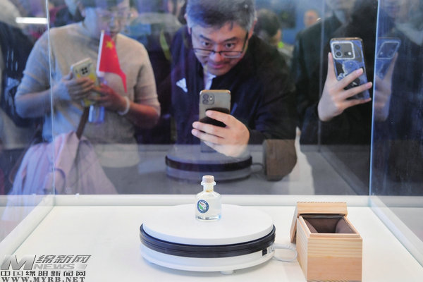 11月7日,觀眾在拍攝由“奮斗者”號深海潛水器采得的海水樣品。