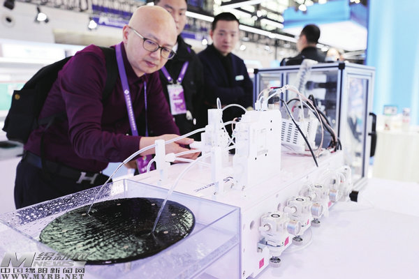 11月7日,在第十二屆中國(綿陽)科技城國際科技博覽會上,參會者觀看水循環(huán)凈化裝置。