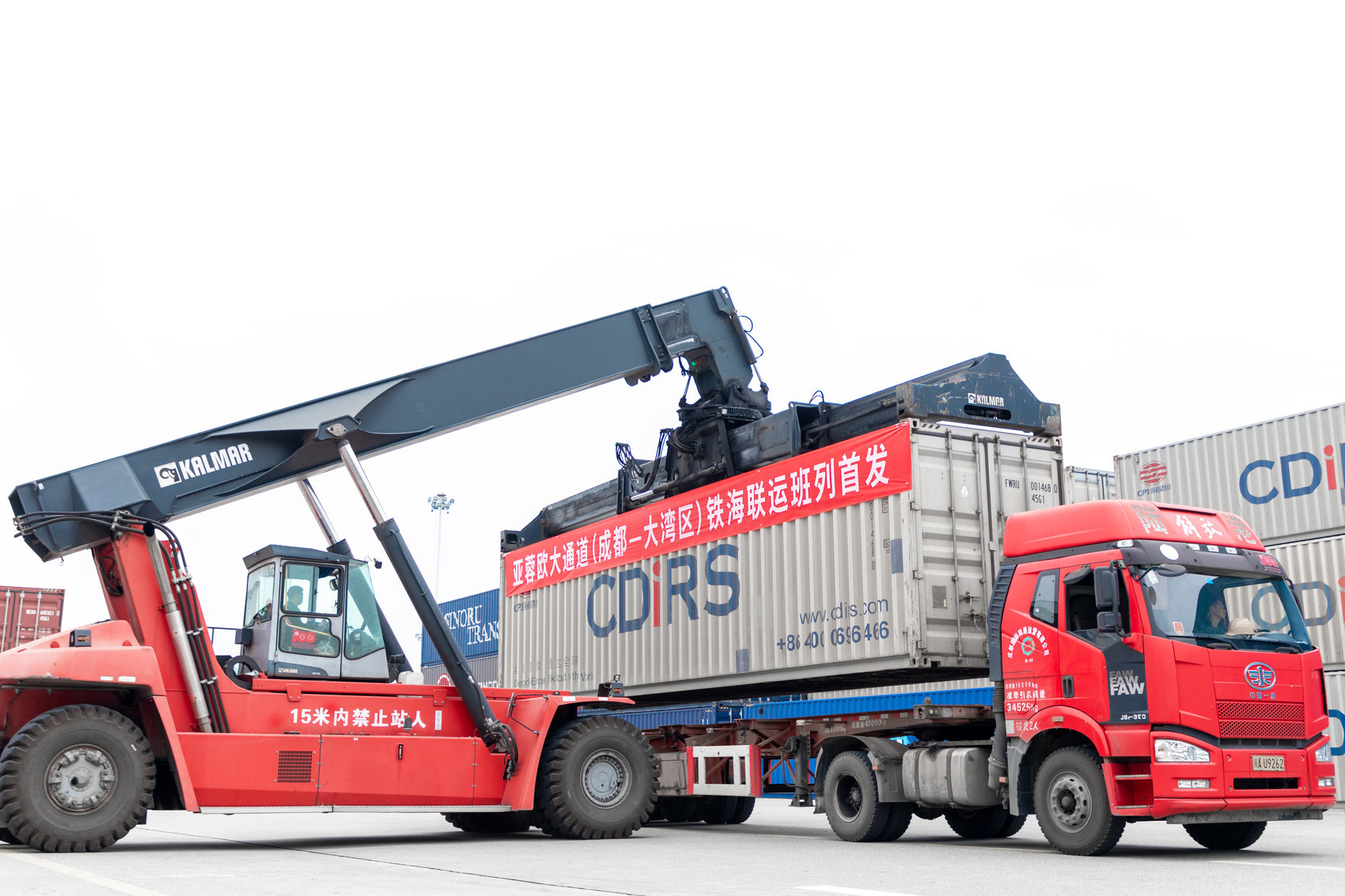 亞蓉歐大通道(成都—大灣區(qū))鐵海聯(lián)運班列首發(fā)。青白江區(qū)委宣傳部供圖
