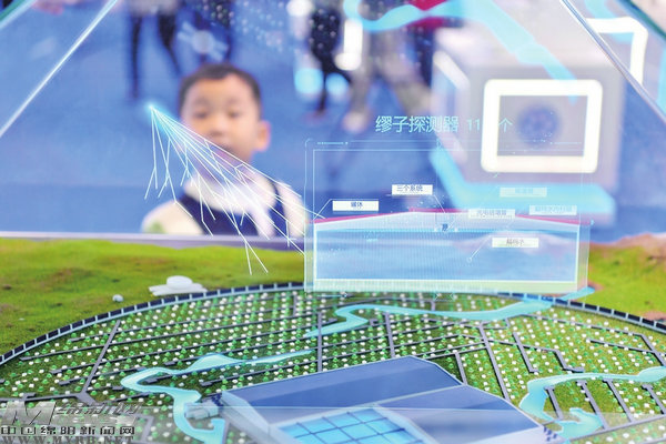 小朋友被高海拔宇宙線觀測站全息模型發(fā)出的光線所吸引