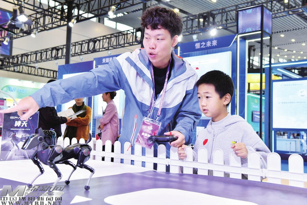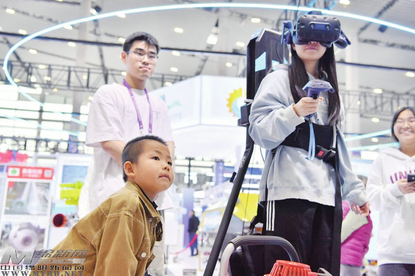 11月8日,許多孩子在家長的陪伴下來到第十二屆中國(綿陽)科技城國際科技博覽會展會現(xiàn)場,無人機、機器狗、潛水器、發(fā)動機等,一件件展品吸引了孩子們好奇的目光。在多個互動展區(qū),參展商讓孩子們親手操控體驗,充分感受科技的魅力,種下夢想的種子。(記者王勇攝影報道)