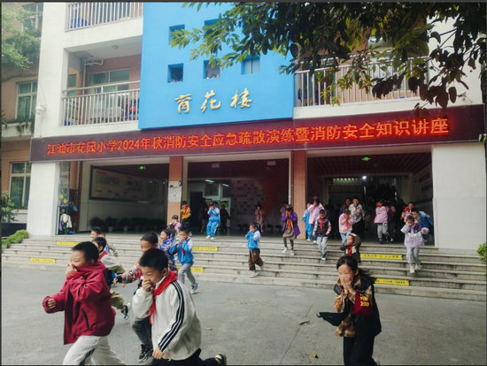 綿陽(yáng)新聞網(wǎng)訊 為了切實(shí)樹立起消防意識(shí),讓學(xué)校廣大師生深入地了解消防逃生常識(shí),提高全體師生的安全疏散意識(shí)及對(duì)突發(fā)事件的靈活應(yīng)變能力,真正掌握好消防安全知識(shí),能有組織、迅速地引導(dǎo)學(xué)生安全快速地疏散撤離,切實(shí)保障師生生命安全。11月6日上午9:30分,江油市花園小學(xué)開展了以“以演筑‘防’ 防范未‘燃’”為主題的2024年秋消防安全疏散演練暨消防安全知識(shí)講座活動(dòng)。