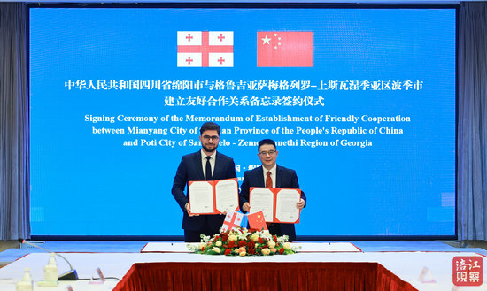 綿陽新聞網(wǎng)訊 11月11日,綿陽市與格魯吉亞波季市簽署建立友好合作關(guān)系備忘錄。綿陽市委副書記、市長(zhǎng)李云,波季市市長(zhǎng)貝卡·瓦恰拉澤分別代表雙方簽約并致辭,波季市議會(huì)主席亞歷山大·特克布查瓦出席并見證簽約。