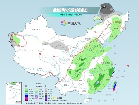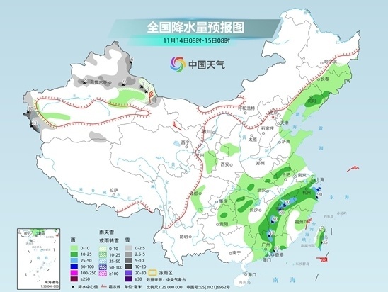 具體來看,今天新疆北部和西部山區(qū)等地部分地區(qū)有小到中雪或雨夾雪,其中,新疆阿勒泰山區(qū)、沿天山一帶和西部高海拔地區(qū)等地有大到暴雪。東北地區(qū)中南部、西北地區(qū)東部、西南地區(qū)東部、華北東部、黃淮東部、江淮、江漢、江南、華南中部、臺灣島等地部分地區(qū)有小到中雨,其中,浙江東部、江西北部和西部、廣東北部和南部沿海、臺灣島東南部等地部分地區(qū)有大雨,局地暴雨。