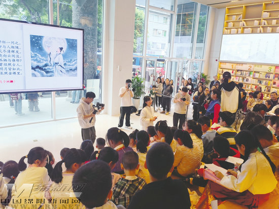 近日,一場別開生面的活動在新華文軒綿陽書城一樓階梯講演廳舉行。“書香墨韻閱享成長”涪城區(qū)青少年讀寫行動公益課堂上,來自綿陽實驗小學(xué)的鄒玲老師以《李白與明月》群詩閱讀展開講述,吸引了百余名少年兒童踴躍參與。
