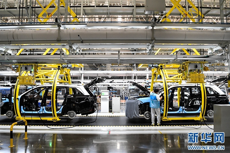 重慶市兩江新區(qū)的賽力斯汽車超級工廠智能化生產(chǎn)作業(yè)現(xiàn)場。新華社記者 王全超 攝