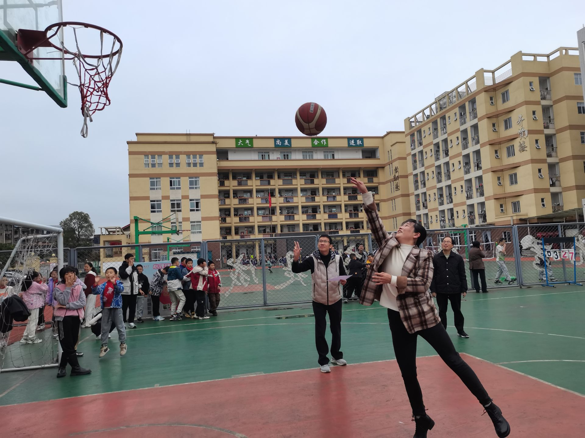 趣味運(yùn)動(dòng)會(huì)的項(xiàng)目有:足球進(jìn)門、定點(diǎn)投籃兩個(gè)項(xiàng)目。以年級(jí)組為單位,分組認(rèn)真組織。教職工們踴躍參加,興致盎然,仔細(xì)琢磨每項(xiàng)比賽的規(guī)則,反復(fù)嘗試、練習(xí);比賽過程中他們更是全神貫注,團(tuán)結(jié)協(xié)作,超常發(fā)揮。賽場上教職工個(gè)個(gè)激情飽滿,賽場下學(xué)生們鼓勁加油,喝彩聲此起彼伏、熱鬧非凡。