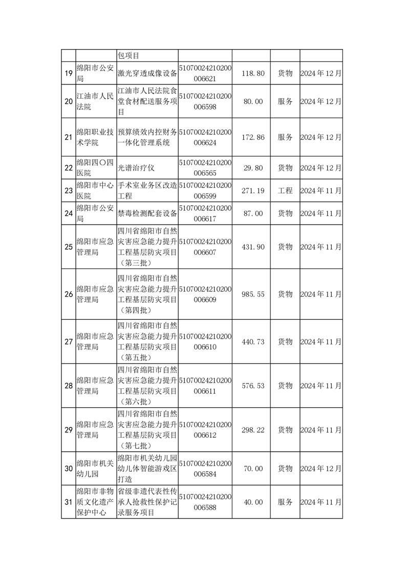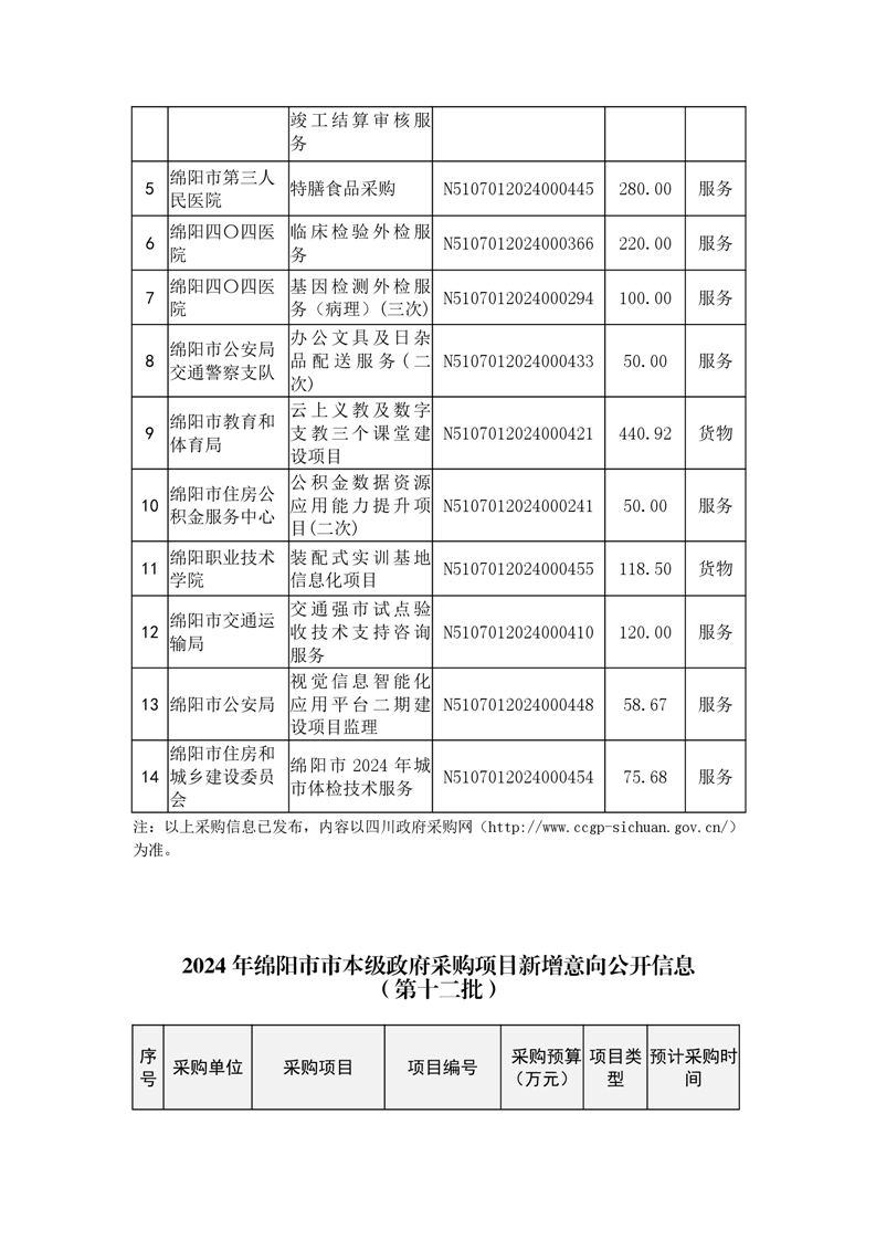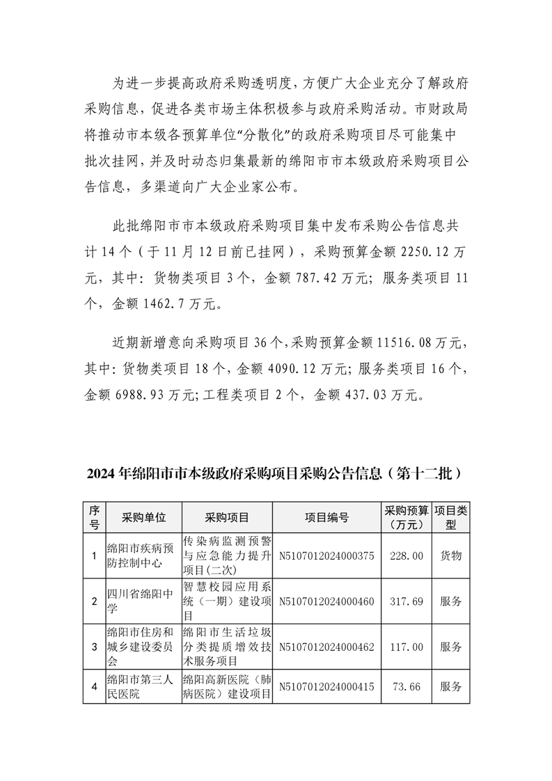 50個(gè)政府采購(gòu)項(xiàng)目的“機(jī)會(huì)清單” 出爐?。?024年第十二波) 綿陽(yáng)市市本級(jí)政府采購(gòu)項(xiàng)目信息動(dòng)態(tài)(2024年第十二批)