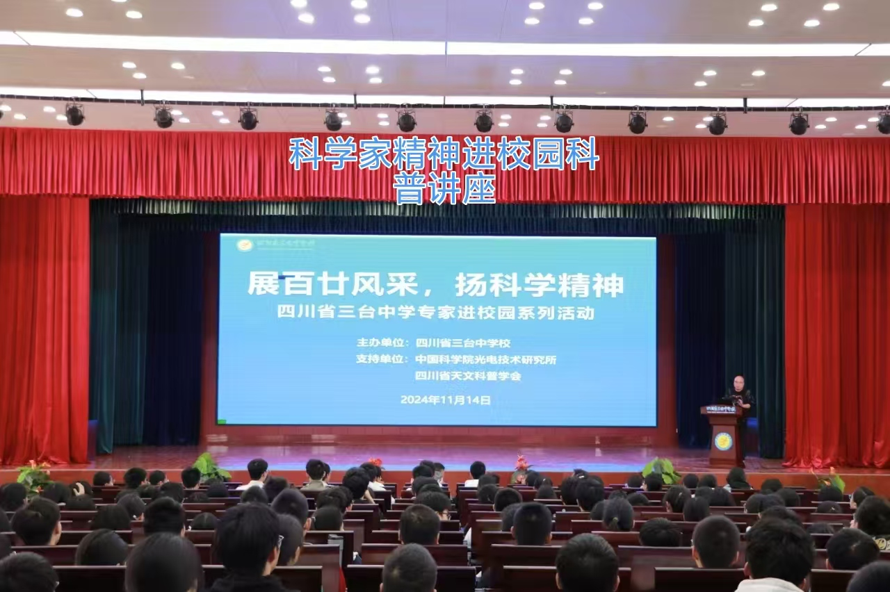 為了培養(yǎng)師生的實(shí)踐能力和創(chuàng)新精神,為科技創(chuàng)新人才培養(yǎng)賦能,近日,三臺(tái)中學(xué)開展了以“展百廿臺(tái)中風(fēng)采 揚(yáng)科學(xué)精神風(fēng)帆”為主題的2024年第21屆科技文化藝體節(jié)之天文科普講座活動(dòng)。中國科學(xué)院光電技術(shù)研究所科學(xué)傳播領(lǐng)導(dǎo)小組辦公室副主任陳勇和四川省天文科普學(xué)會(huì)副會(huì)長張春來出席,全校師生200余人參加活動(dòng)。