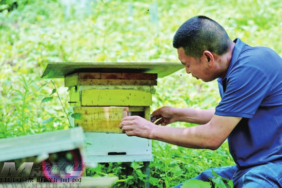 張玉波在蜂箱前忙碌(視覺綿陽資料圖)