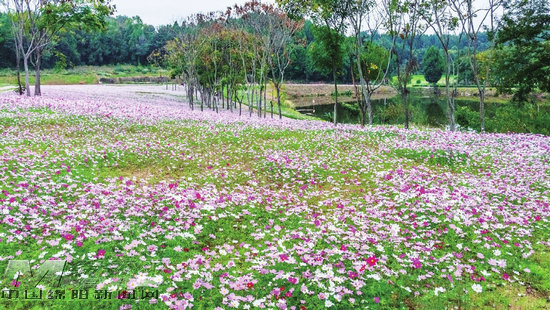 綿陽(yáng)新聞網(wǎng)訊 近日,在仙海風(fēng)景區(qū)沉抗鎮(zhèn),大片波斯菊次第盛開(kāi)。兩萬(wàn)余平方米的花田里,從粉紅到深紫,從金黃到純白,成片的波斯菊猶如繁星點(diǎn)點(diǎn),匯聚成一片片色彩斑斕的花海。