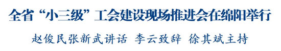 綿陽新聞網(wǎng)訊 11月21日,全省“小三級(jí)”工會(huì)建設(shè)現(xiàn)場推進(jìn)會(huì)在綿陽舉行,會(huì)議旨在進(jìn)一步增強(qiáng)做好“小三級(jí)”工會(huì)工作的政治自覺、思想自覺、行動(dòng)自覺,真正讓“小三級(jí)”工會(huì)建起來、轉(zhuǎn)起來、活起來、強(qiáng)起來。省委常委、省總工會(huì)主席趙俊民,全國總工會(huì)書記處書記、黨組成員張新武出席會(huì)議并講話;市委副書記、市長李云出席會(huì)議并致辭;省總工會(huì)黨組書記、副主席徐其斌主持會(huì)議。