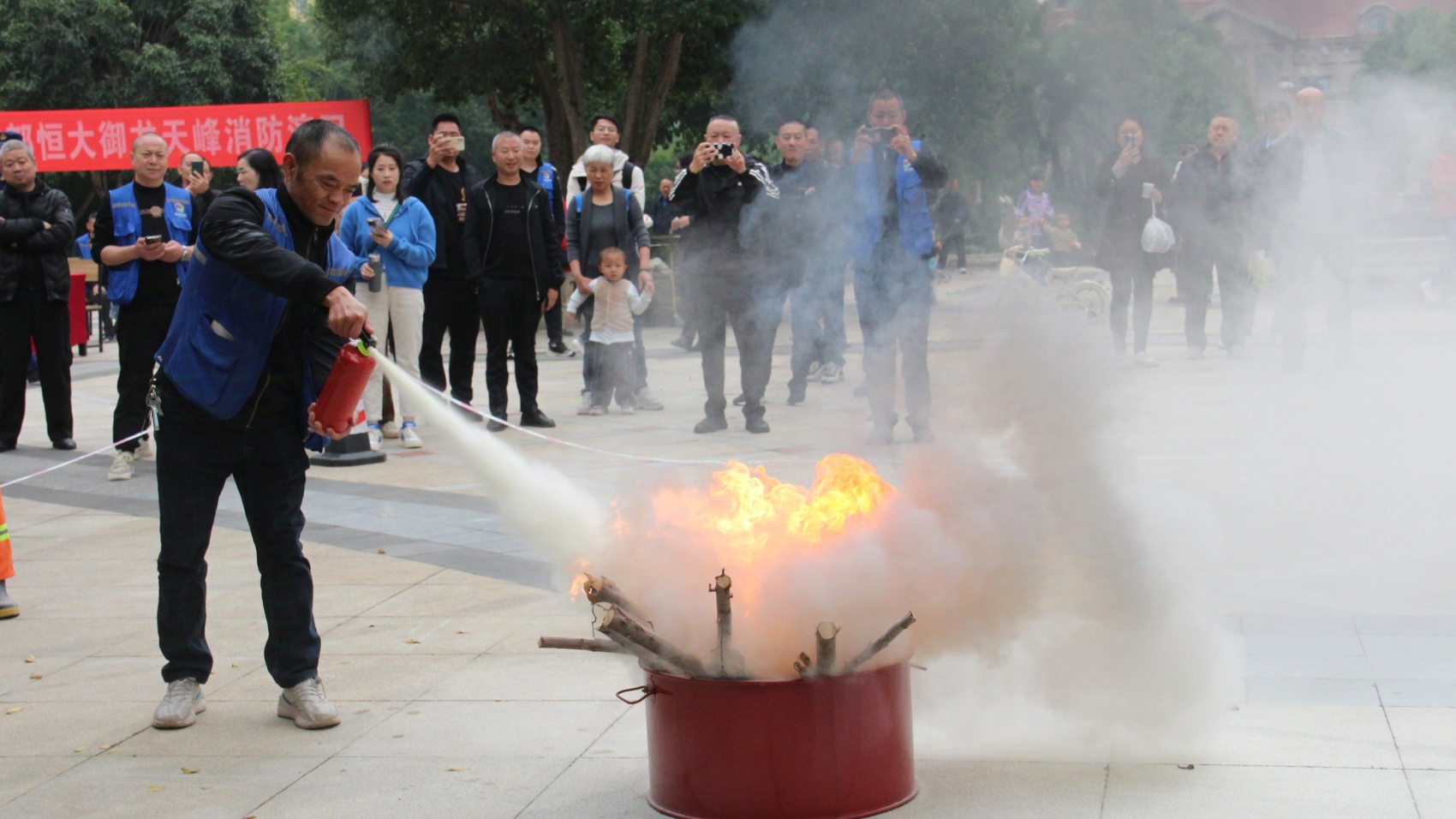 11月7日,成都龍泉驛區(qū)同安街道組織居民開展了消防演練。