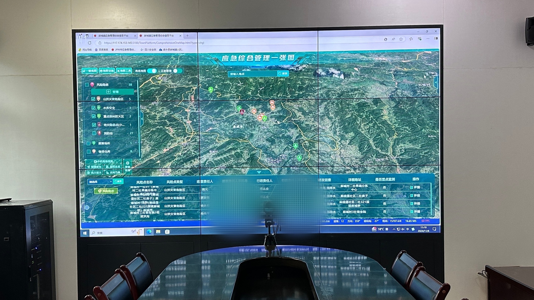 在瀘州市敘永縣麻城鎮(zhèn)的應(yīng)急管理辦公室,各類風(fēng)險點位和相應(yīng)責(zé)任人在指揮大屏上一目了然。