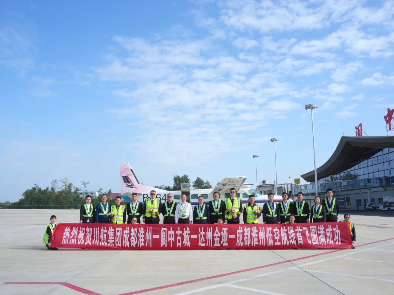 10月23日,一架賽斯納208B型飛機從成都起飛,經(jīng)過1小時飛行后,平穩(wěn)降落在閬中機場,短暫停留后又飛往達州,實現(xiàn)“成都—閬中—達州”低空短途運輸航線首飛。