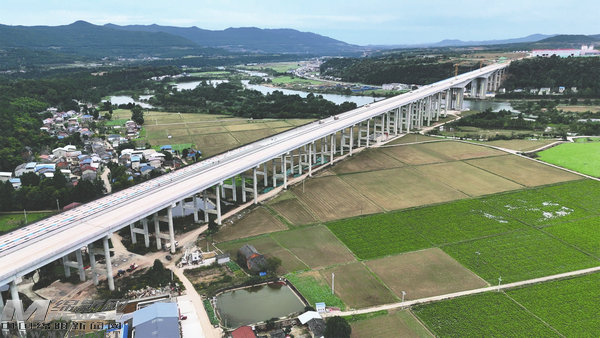 今年7月20日,潼江河特大橋?qū)崿F(xiàn)單幅架通。國(guó)慶期間,開始左幅T梁架設(shè)。