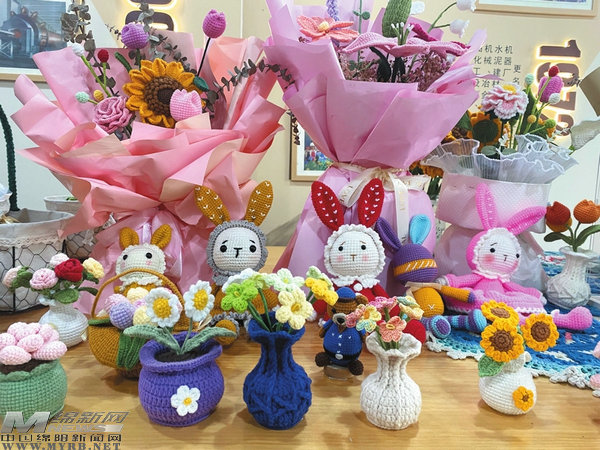 綿陽新聞網(wǎng)訊 玫瑰花、小雛菊、風信子、向日葵……近日,走進綿陽江油川礦社區(qū)“礦嬢嬢編織社”,這些用毛線編織而成的花束立即吸引了記者的目光。