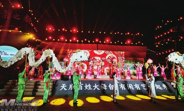 “天府百姓大舞臺”匯演中,鹽亭參演節(jié)目《龍騰獅躍迎賓來》。
