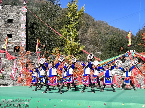 伴隨著莊重的鼓聲,身著特色羌服的當?shù)卮迕袷帜醚蚱す淖呱衔枧_,活動在歡快的歌舞中正式開始。“我多想幻成你山上的云、夏天的瀑布、冬天的冰凌……”一首首羌鄉(xiāng)主題的歌曲輪番上演,唱出了廣大羌族兒女對家鄉(xiāng)的熱愛。敲起氣勢恢宏的羊皮鼓,唱起高亢嘹亮的民歌,吹起悠揚婉轉的羌笛,跳起熱鬧歡快的羌族舞蹈……民俗展演精彩紛呈,呈現(xiàn)出一臺原汁原味的羌文化盛宴,讓現(xiàn)場無數(shù)游客沉浸其中。