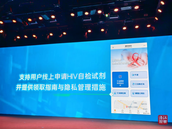 啟動現(xiàn)場,“綿陽防艾”小程序上線。該款小程序支持用戶線上申請HIV自檢試劑,市民可進行艾滋病感染風險自評、咨詢艾滋病相關知識、了解暴露后預防知識等。