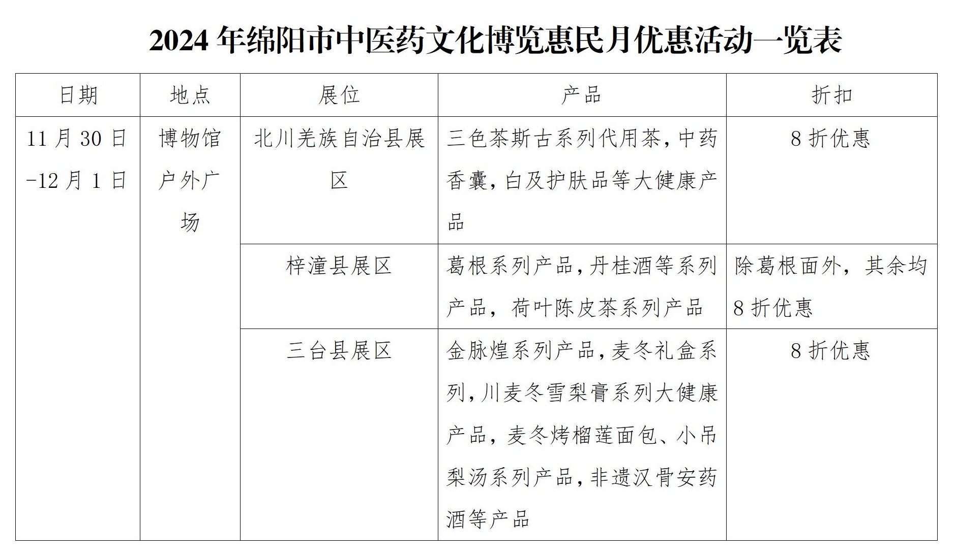 11月30日,2024年綿陽市中醫(yī)藥文化博覽惠民月活動(dòng)在市博物館正式開幕。此次活動(dòng)為期一個(gè)月,將持續(xù)至12月30日。
