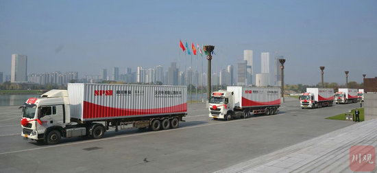 通過“天府號”跨境公路班車運輸?shù)拇ㄘ浐?ldquo;四川造”產(chǎn)品
