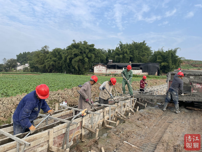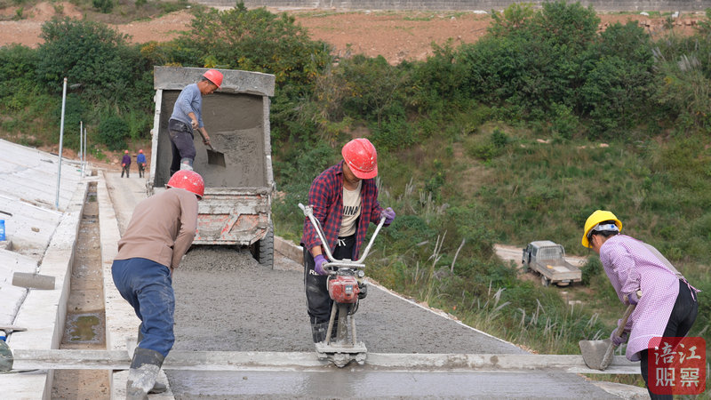 記者在涪城區(qū)新皂鎮(zhèn)白果林村農(nóng)田水利施工現(xiàn)場看到,工人們正緊鑼密鼓地開展溝渠邊墻的澆筑等工作。