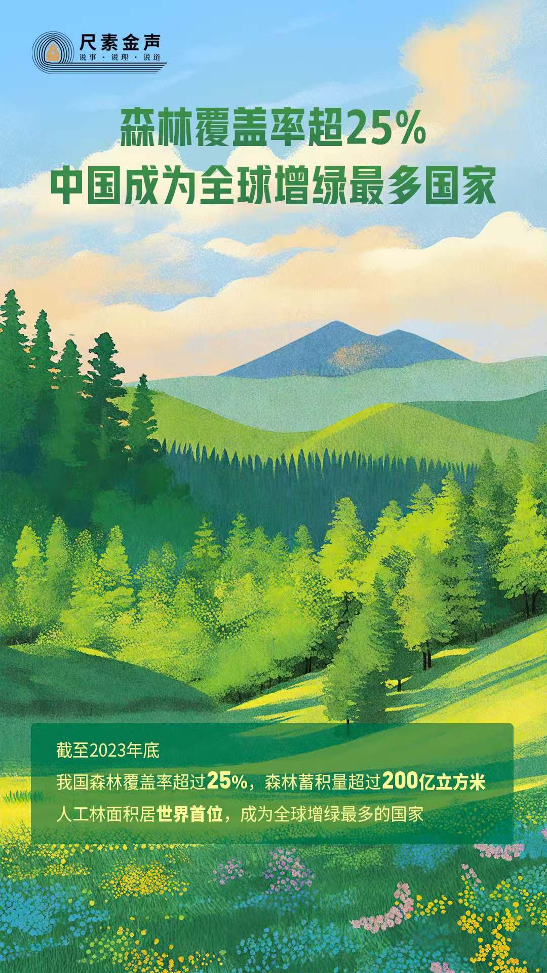 最新數(shù)據(jù)顯示,截至2023年底,我國(guó)森林覆蓋率超過25%,森林蓄積量超過200億立方米,人工林面積居世界首位,成為全球增綠最多的國(guó)家。