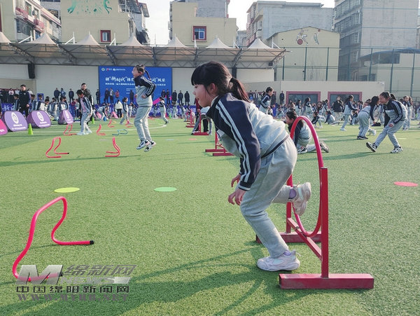 綿陽(yáng)新聞網(wǎng)訊 “跑起來(lái),還有最后兩圈!”12月3日,綿陽(yáng)中學(xué)英才學(xué)校大課間活動(dòng)時(shí)間,學(xué)生們完成集體跑和“活力繩操”后,以班級(jí)為單位,開(kāi)展運(yùn)球往返跑、口袋跳、跳大繩等20余種運(yùn)動(dòng)項(xiàng)目,在趣味運(yùn)動(dòng)中放松心情、鍛煉身體。當(dāng)天,四川省第三屆大課間體育活動(dòng)視頻評(píng)比總結(jié)暨現(xiàn)場(chǎng)展示交流活動(dòng)在該校舉行,作為我省大課間體育活動(dòng)的典型代表,綿中英才展示了大課間體育活動(dòng)的豐富性,分享了經(jīng)驗(yàn)。