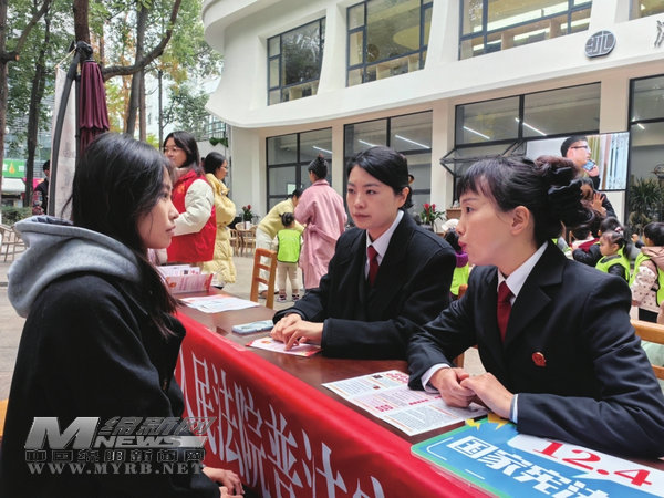 同法官一起“讀法”。在“12·4”國家憲法日普法宣傳及閱讀分享活動(dòng)現(xiàn)場(chǎng),綿陽教工幼兒園的老師帶著一群小朋友來到位于人民公園的市圖書館昭烈分館樓下的普法宣傳點(diǎn),市中級(jí)人民法院的法官們向小朋友介紹憲法日的相關(guān)情況。在讀書分享環(huán)節(jié),法官們向讀者們推薦《想點(diǎn)大事》《法官說民法典》等書籍,結(jié)合自己的閱讀感悟、法院工作經(jīng)歷、生活中《民法典》等法律法規(guī)密切相關(guān)的事例與案例,與大家進(jìn)行分享交流。