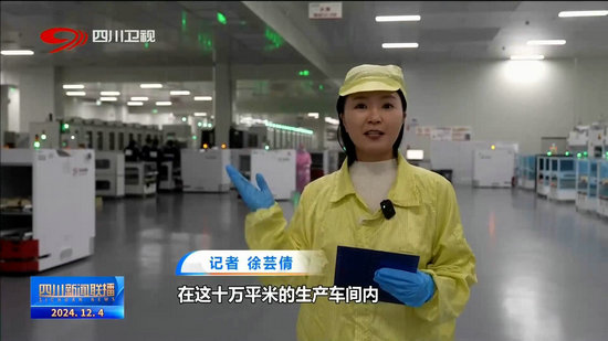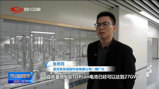 記者 徐蕓倩:這里是宜賓英發(fā)德耀的智慧工廠,在十萬平方米的生產(chǎn)車間內(nèi),一天可生產(chǎn)450萬片(電池),相當于每0.8秒就能夠生產(chǎn)出這樣一張(電池)。就是這樣10克重量的電池片,它的光電轉(zhuǎn)化效率已突破27.02%。相當于同單位的光能轉(zhuǎn)化更多的電,對于下游企業(yè)來說,也能夠大大提高經(jīng)濟效益。