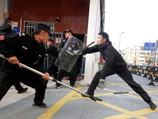 下午16時,防恐演練準(zhǔn)時開始。模擬情景中,不法分子試圖闖入校園制造破壞。該校最小應(yīng)急單元——校保衛(wèi)隊迅速反應(yīng),英勇阻攔,并在第一時間報警。同時,安全應(yīng)急小組也立即啟動應(yīng)急預(yù)案。該校安全辦主任劉剛通過校園廣播系統(tǒng)緊急通知全校師生關(guān)好門窗,做好防護準(zhǔn)備。整個校園迅速進(jìn)入緊張而有序的應(yīng)急狀態(tài),這一環(huán)節(jié)不僅考驗了教職工的應(yīng)急反應(yīng)能力,也檢驗了學(xué)校應(yīng)急體系的實效性。