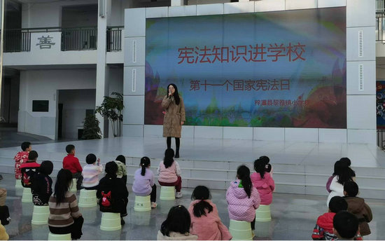 宣講活動中,少總部總輔導(dǎo)員張利君進(jìn)行了憲法知識進(jìn)學(xué)校宣講,首先向同學(xué)們介紹了“國家憲法日”的設(shè)立由來:之所以確定這一天為“憲法日”,是因為中國現(xiàn)行的憲法于1982年12月4日正式實施。其次,介紹了憲法的地位、內(nèi)容、特征、實施等小知識。第三要求同學(xué)們要知道憲法、了解憲法,將憲法教育的種子埋在心靈,成為一個學(xué)憲法、知憲法、懂憲法的小公民。