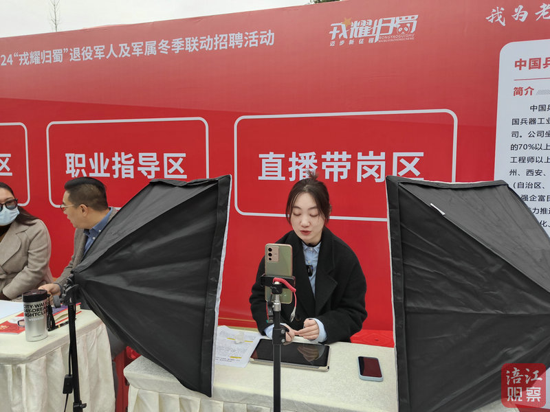 據(jù)了解,本次招聘活動由四川省退役軍人事務(wù)廳主辦,省教育廳、人力資源社會保障廳、省國資委、省工商聯(lián)和各市(州)聯(lián)辦,采取全省聯(lián)動、區(qū)域協(xié)作的模式,在成都、綿陽、瀘州、宜賓、廣安等地分區(qū)域啟動。在綿陽啟動儀式現(xiàn)場,主持人通過現(xiàn)場視頻連線方式與成都、瀘州、宜賓、廣安會場進行線上互動,直擊招聘實況。