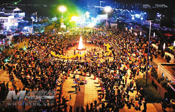 在北川羌族自治縣新生廣場,當?shù)厝罕姎g慶羌歷新年。(除署名外,其它圖片均為北川縣委宣傳部提供)