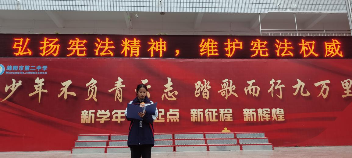 12月4日是全國(guó)憲法日。為了學(xué)習(xí)宣傳憲法,積極營(yíng)造學(xué)憲法、講憲法的良好氛圍,不斷增強(qiáng)廣大師生的法治意識(shí)、法治觀念,推動(dòng)依法治校進(jìn)程,讓法治思想更加深入人心,12月2日,綿陽市第二中學(xué)利用朝會(huì)時(shí)間組織開展了以“弘揚(yáng)憲法精神,維護(hù)憲法權(quán)威”為主題的2024年憲法誦讀活動(dòng),全體師生積極參與,營(yíng)造出濃厚的尊法、學(xué)法氛圍。