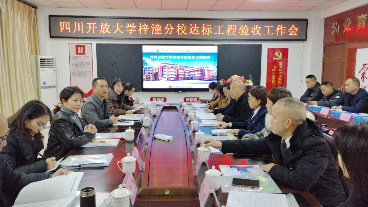 12月5日,四川開放大學(xué)“縣級(jí)分校達(dá)標(biāo)工程”驗(yàn)收組赴綿陽開放大學(xué)梓潼分校開展“縣級(jí)分校達(dá)標(biāo)工程”驗(yàn)收評(píng)估工作,四川開放大學(xué)文法學(xué)院楊戴萍教授全程督導(dǎo)驗(yàn)收工作。梓潼縣教育工委副書記、教體局黨組書記、局長(zhǎng)安顯奎,梓潼縣教育和體育局黨組成員黃鵬,職成教股股長(zhǎng)陳麗蓉參加達(dá)標(biāo)工程驗(yàn)收會(huì)議。